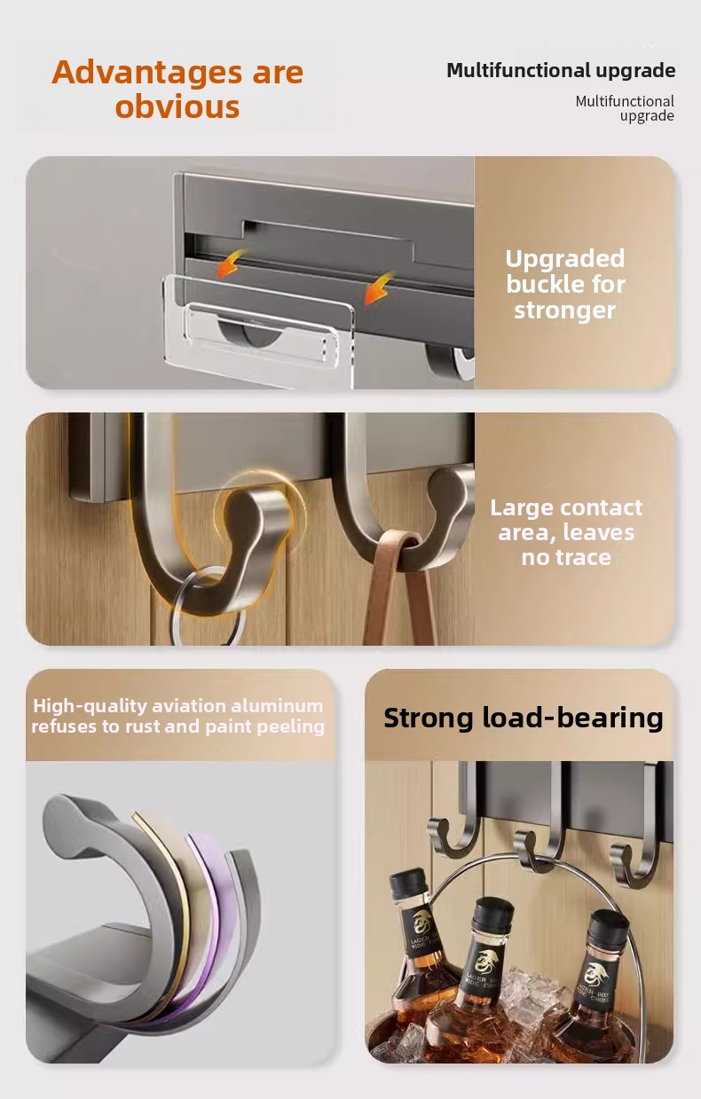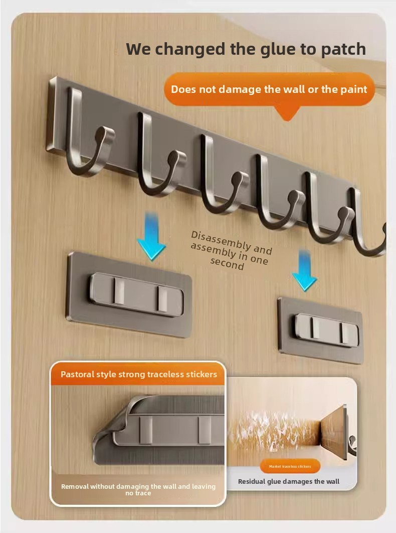 Strong Adhesive: Features reinforced adhesive technology for secure wall mounting without drilling.