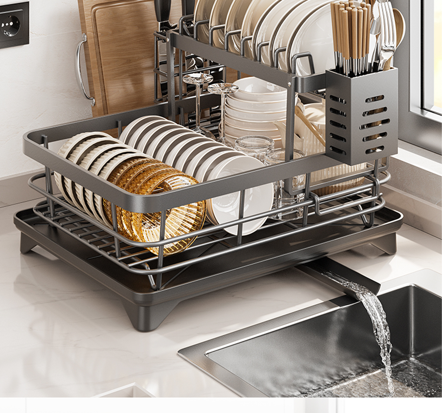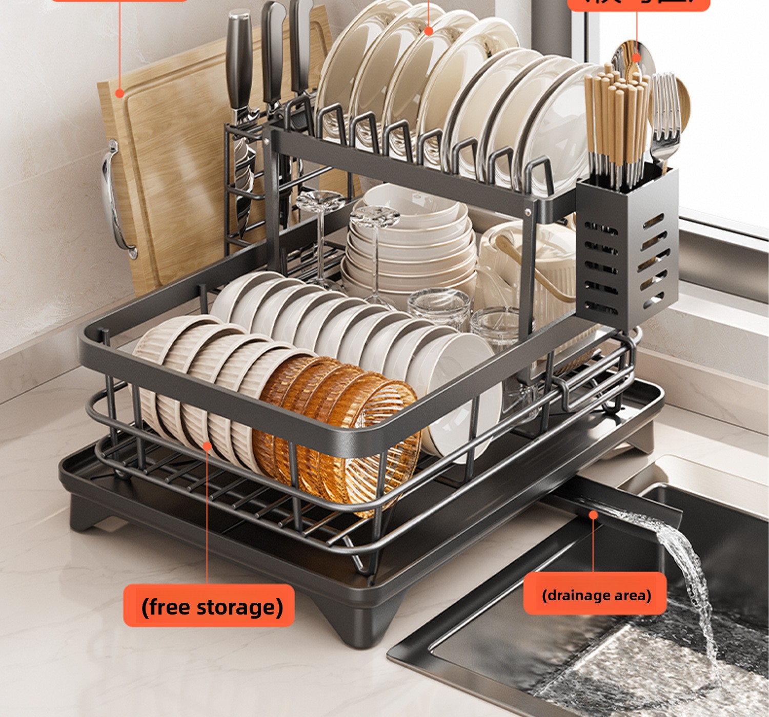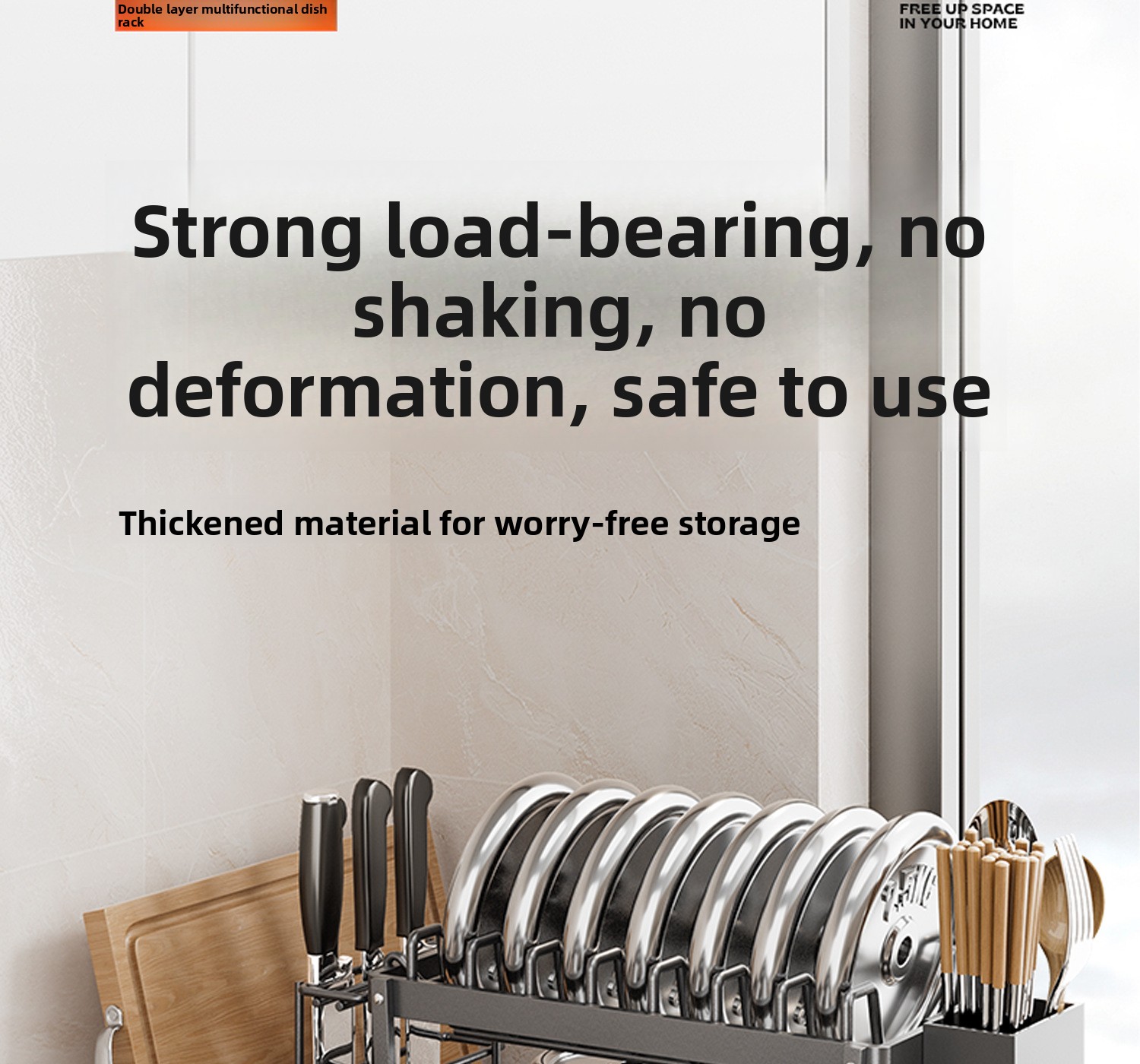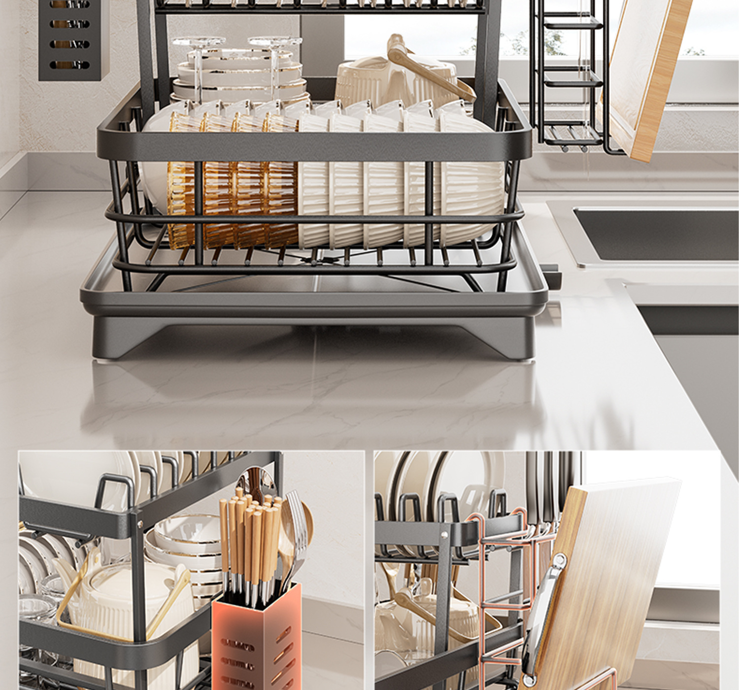 Multifunctional design: Combines dish rack, chopstick holder, and cutting board storage for organized kitchen space